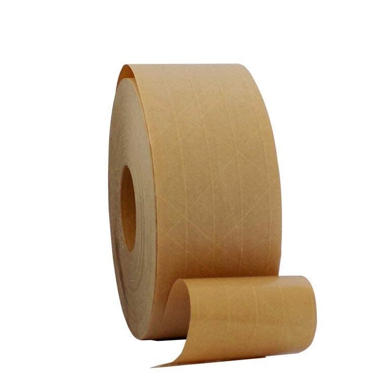 Gummed paper tape made of Professional quality material, 100% recyclable and repulpable, the 60# kraft paper backing is reinforced with a heavy duty fiberglass filament for extra tensile strength and durability. It's great for heavy duty and high volume shipping and provides a professional, quality look.